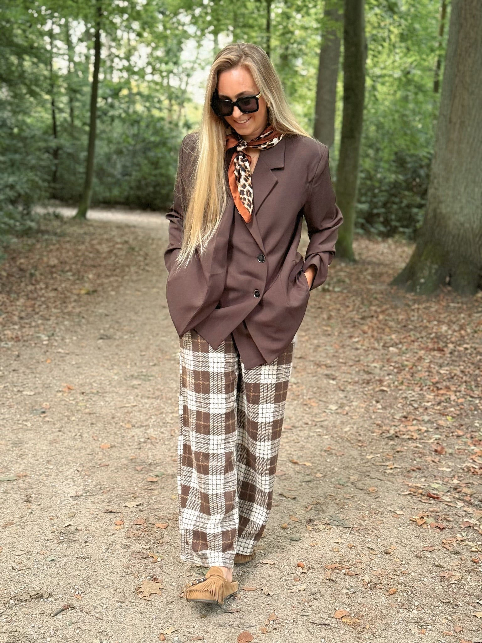 Geef je herfstgarderobe een upgrade met deze bruine ruitjesbroek.